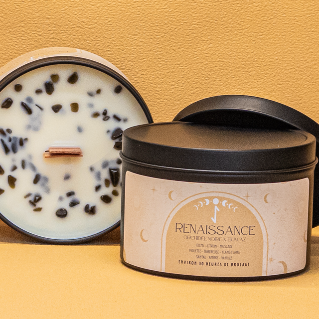Bougie “RENAISSANCE” – Orchidée Noire & Obsidienne Dorée